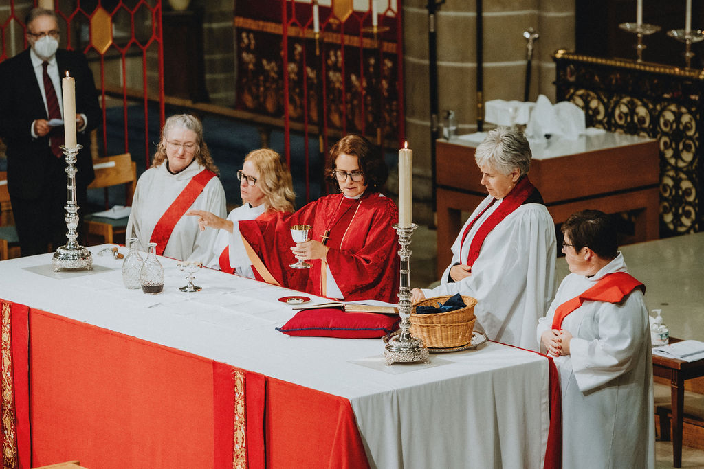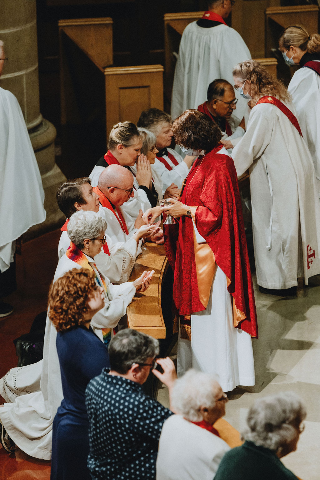 As the ordinations fell on Holy Cross Day, Bishop Anna Greenwood-Lee, who presided, spoke to the congregation of its origin. She recounted the story of Constantine, who inspired by a vision of the cross, won a great battle and became emperor. In gratitude, he legalized Christianity — a “persecuted and treasonous religion” — throughout the Roman Empire.