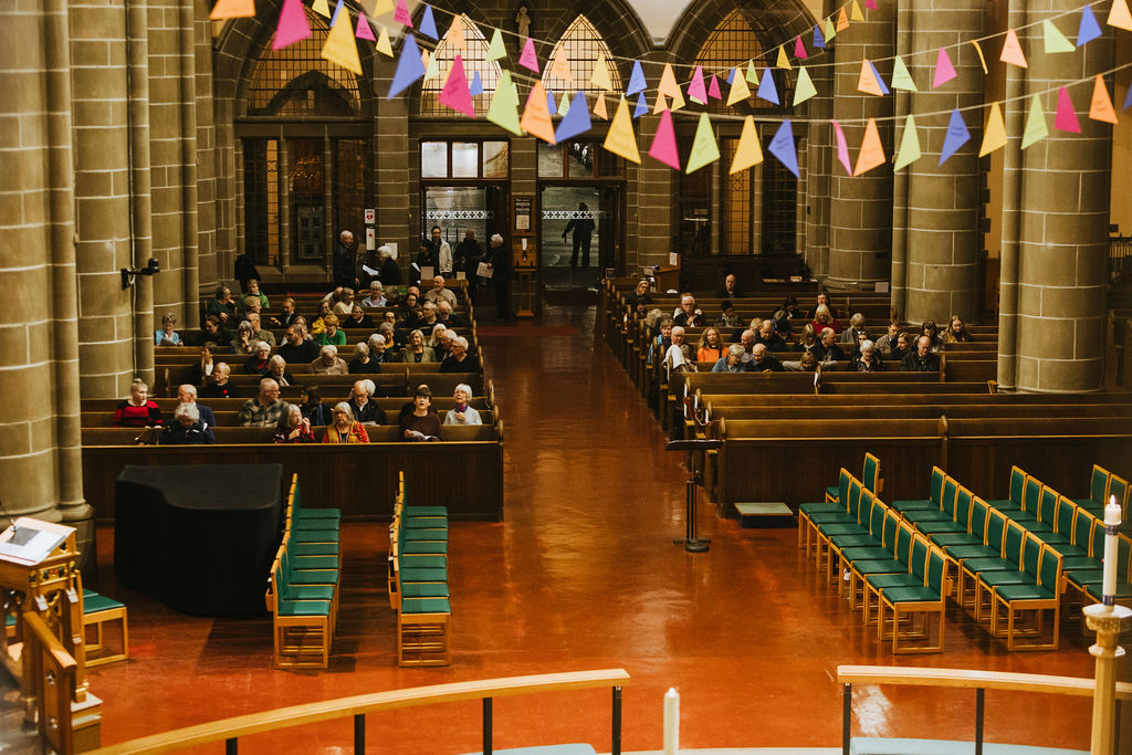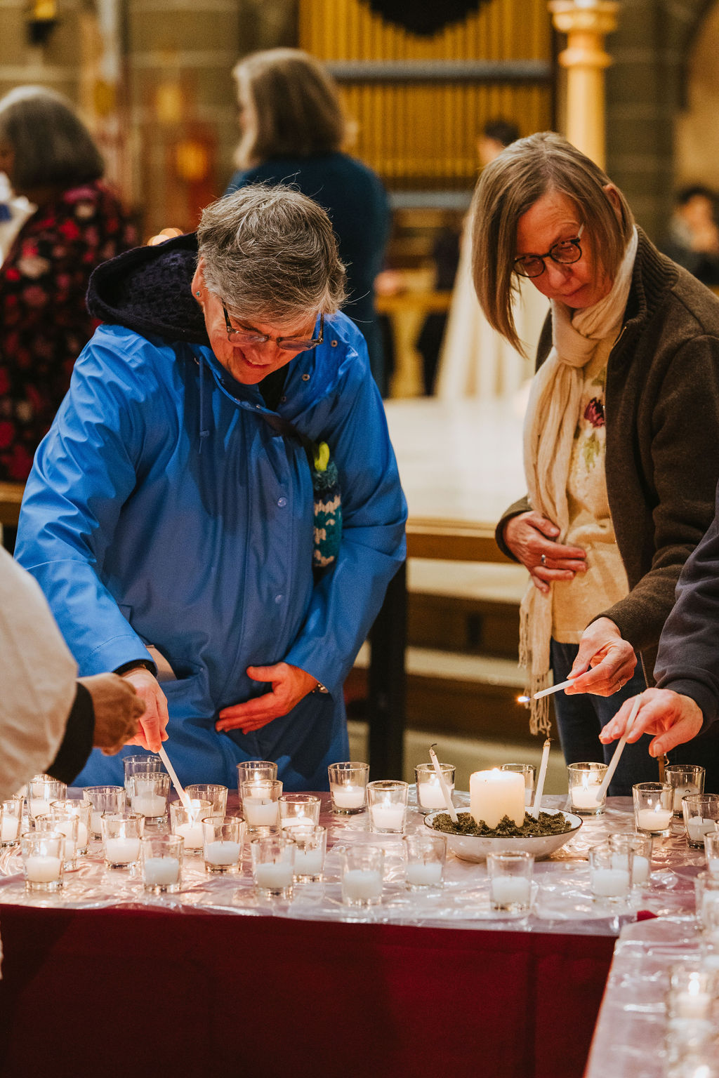 Below is a gallery of images from the opening worship service for Synod 2024, held on Nov. 1, the Feast of All Saints. It is a day when we celebrate the thin veil between life and death, and remember those we love and see no longer. For the service, brightly coloured flags were hung above the nave, bearing the names of loved ones that people from across the diocese submitted. The flags honoured those who are no longer with us and acted as a visible reminder of the cloud of witnesses that join us in our worship. After communion, attendees were invited to light small candles to remember the dearly departed.