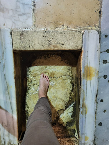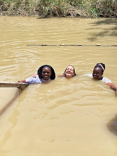 Pilgrimage engages our senses. It is through this embodied experience that a deepening relationship with the stories, with the land, and with the worldwide Christian community occurs. In the Holy Land, I had the opportunity to reaffirm baptismal vows in the River Jordan, to swim in the Sea of Galilee, to drink from the well where Jesus met with the Samaritan woman, to climb on my hands and knees out of the tomb of Lazarus, to pray next to the stone where Jesus was said to ascend to heaven (on the day of the Feast of the Ascension!), to sit in what is believed to be the Church of the Nutrition (the home of the Holy Family), and to receive communion in the Upper Room on Pentecost. I would go to the Church of the Holy Sepulchre, day after day, to take in the flurry of piety, devotion and activity of this sacred place. I would watch as pilgrims bless their crosses on the Anointing Stone, or kiss the walls of the tomb of Jesus, inch by inch. I would listen to the Coptic Christian chants and Franciscan hymns. I would smell the Syrian Orthodox frankincense. This orchestra of activity filled my senses.