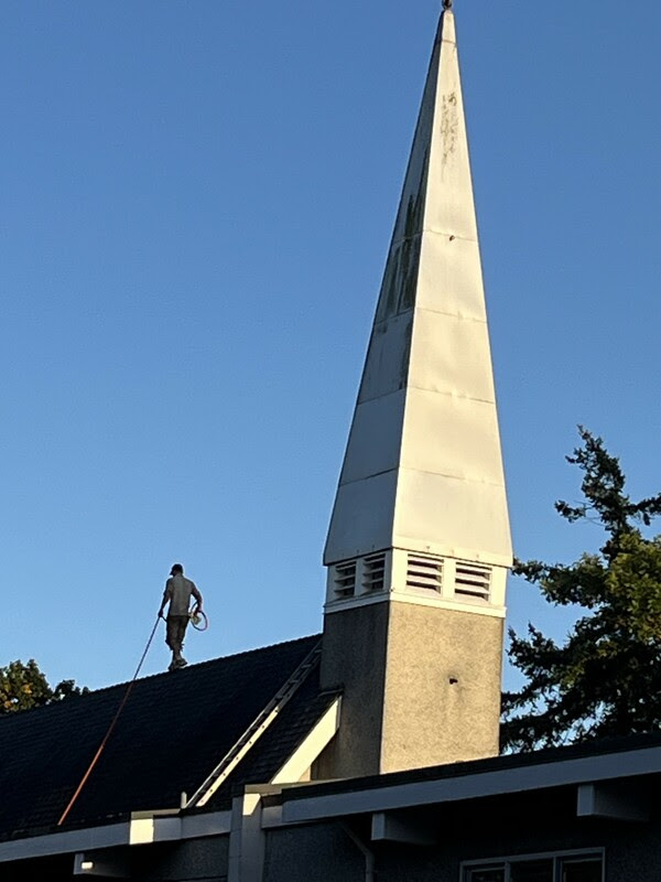 The man on the roof of St. Andrew’s Anglican Church in Sidney (see photo gallery above) likely didn’t have the 1980s TV series in mind as he walked along cleaning moss off the roof and steeple. Up there, however, he was likely closer to heaven than any parishioner has ever been.