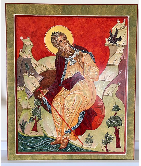 I have gone on to write many other icons. The icon of Elijah saw me through the pandemic as we all faced a time of exile, much like being on the run from Jezebel, stranded in the wilderness bemoaning the isolation, and needing divine intervention and sustenance (as shown in the bread/host in the raven’s beak).